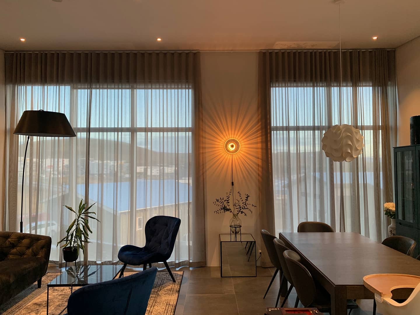 gluggatjöld gefa róandi yfirbragð og draga bæði